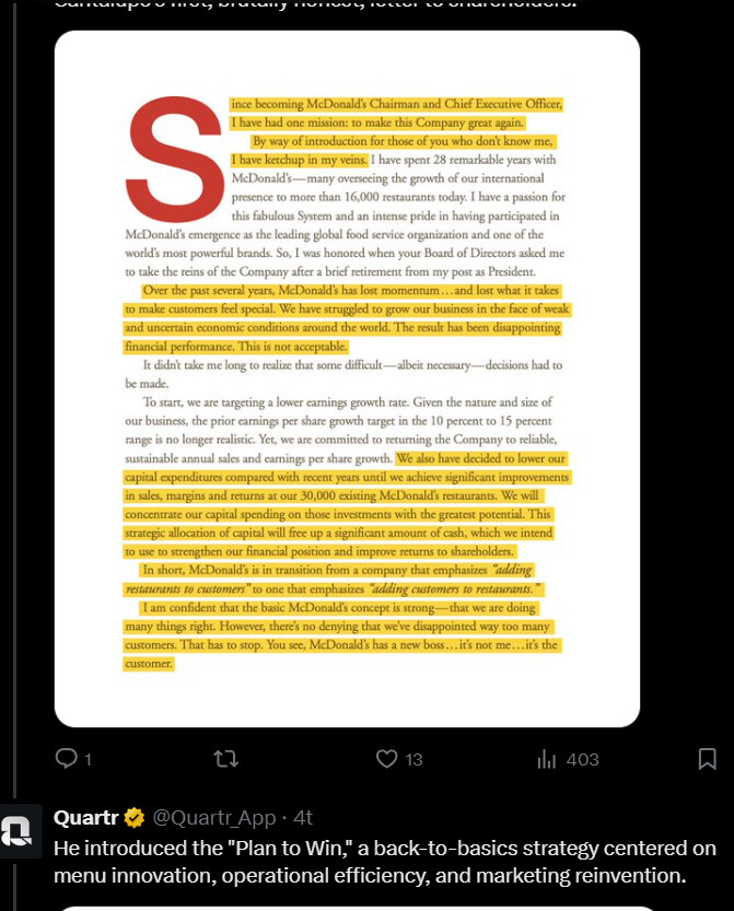 McDonald’s ability to adapt to different environments and appropriately comply with regulations strengthens its position in the industry. Adopting technology is also a key factor in the company’s long-term success.