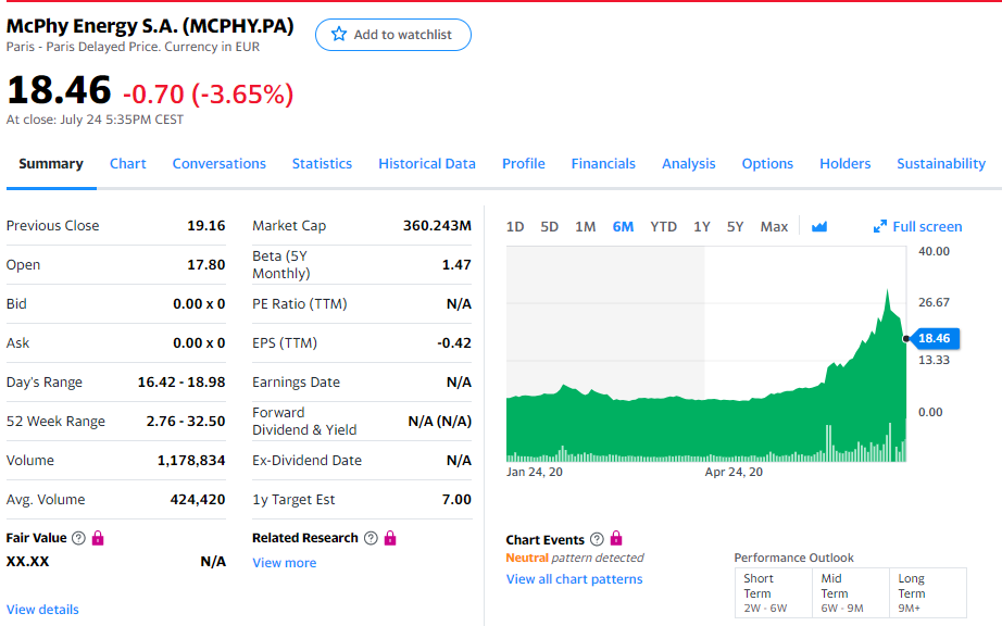 McPhy on listattu Pariisiin: MCPHY ENERGY | FR0011742329 | Euronext exchange Live quotes