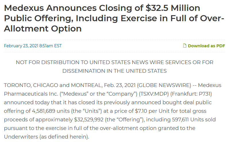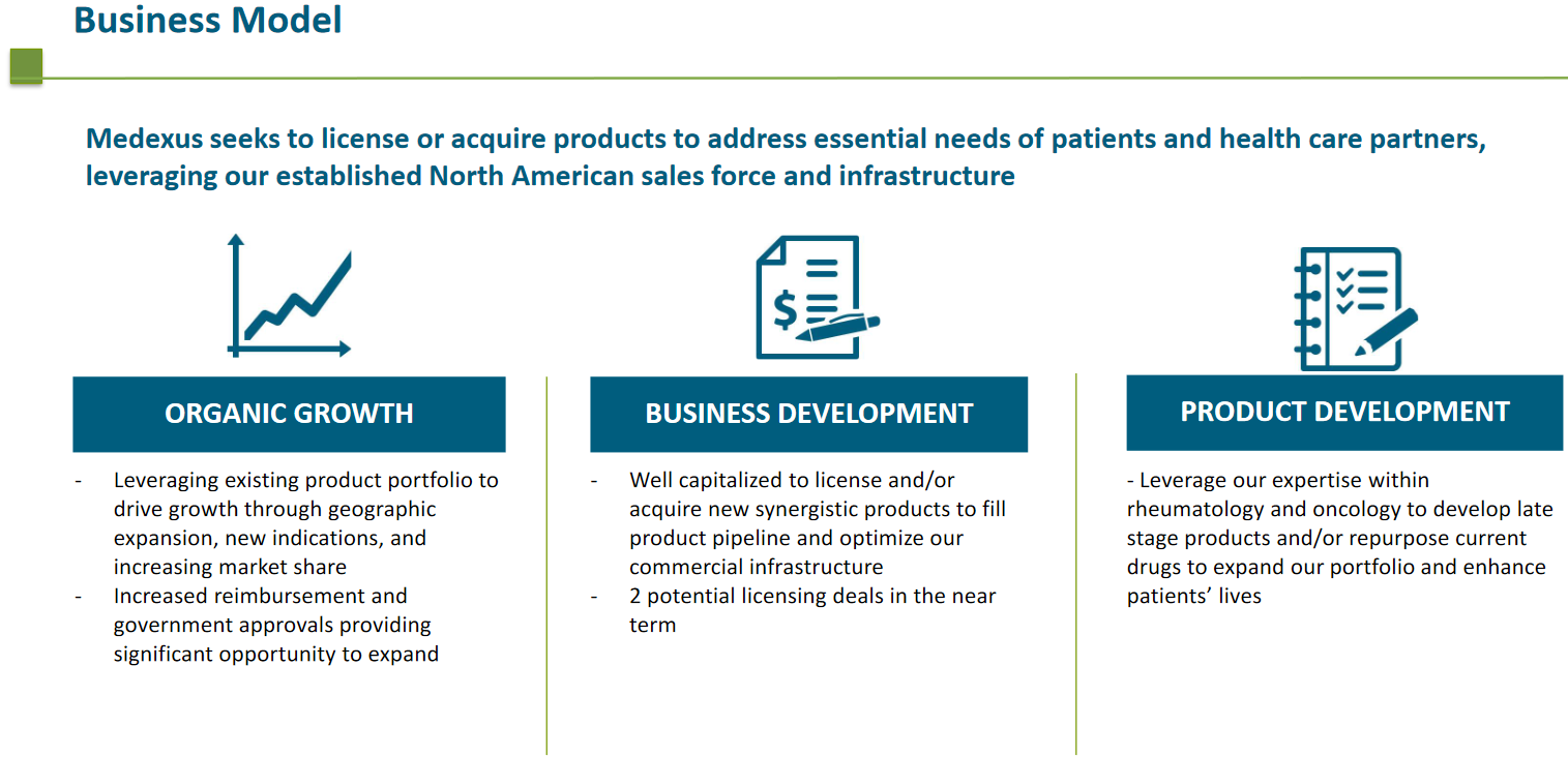 Medexus is a small Canadian company specializing in the sale of pharmaceuticals:
