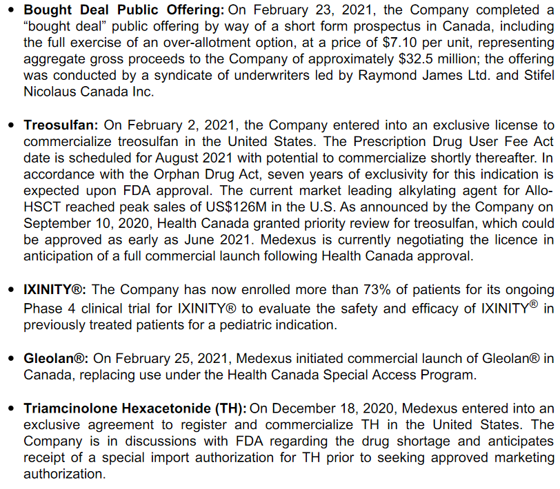Medexus quarterly reports: