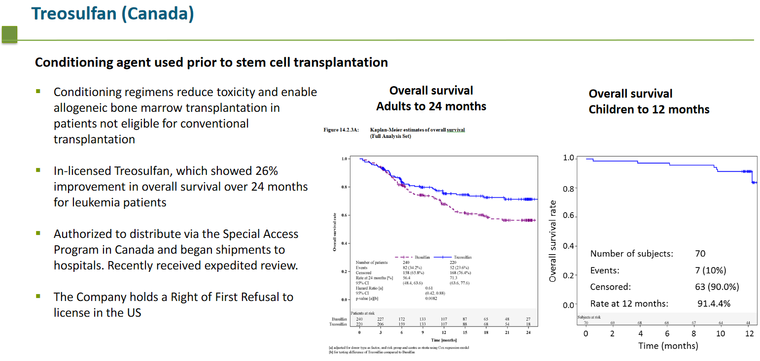 Also, the results for the bone marrow transplant drug Treosulfan are convincing, and the company aims to start sales in the US in late 2021:
