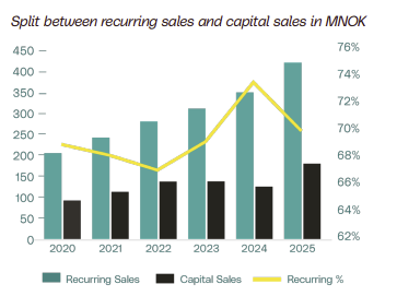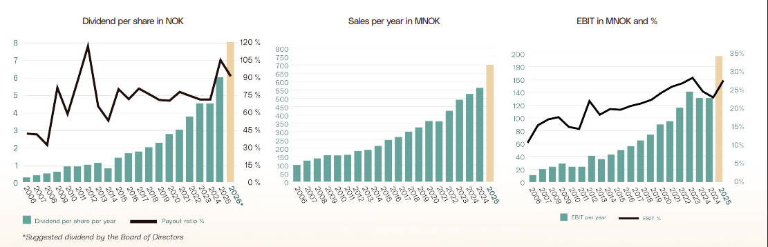 Selskabets mål er at maksimere skabelsen af aktionærværdi. Udbytte udbetales, når det stemmer overens med vækststrategien og de finansielle mål. I praksis er udbyttet vokset kraftigt: