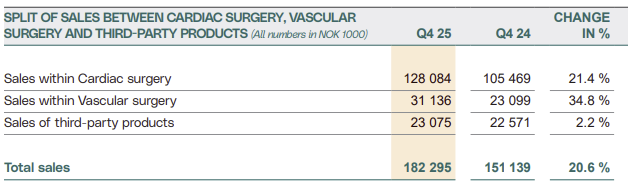 Væksten i salget af egne produkter var 26%, hvoraf salget af billeddiagnostiske porteføljeprodukter voksede 29% og vaskulære porteføljeprodukter 21%.