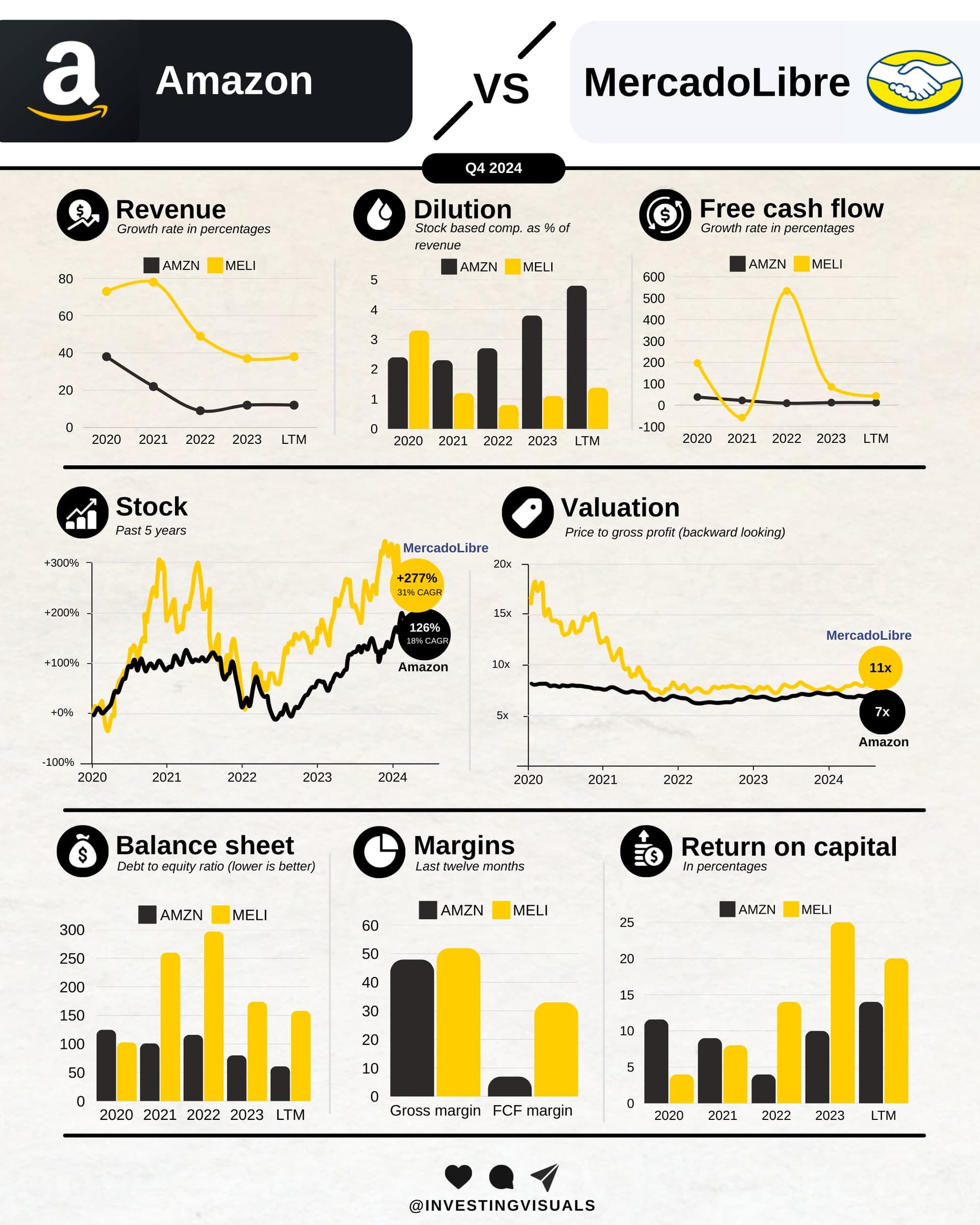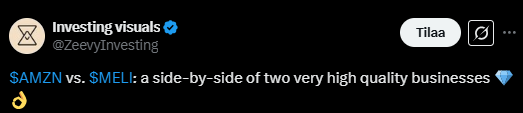 Tässä on Investing visualsin vertailu Amazonista ja Mercado Librestä. ![]()