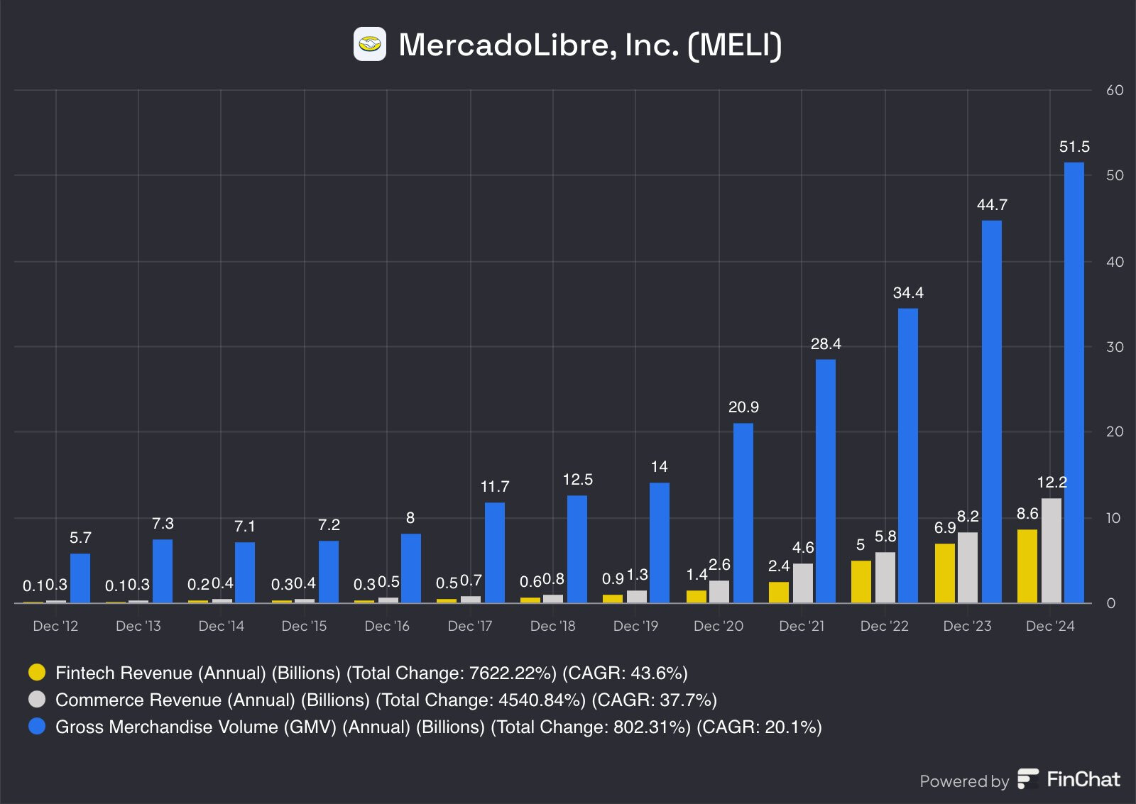 Markkinan arvon odotetaan nousevan 1 biljoonaan dollariin vuoteen 2030 mennessä ja MercadoLibre hallitsee noin 30 prosenttia markkinoista, sen osuuden kasvaessa jatkuvasti.