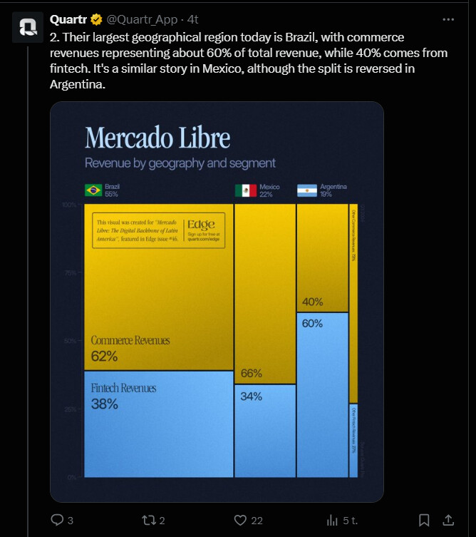 Tämän tviitin aihe on osin varmaan tuttu tai ainakin ollut monien mielissä, mutta MeLi yrittänee monissa isoissa maissa ja jos niissä homma lähtee kasvavamaan ja skaalaamaan, niin ai että. ![]()