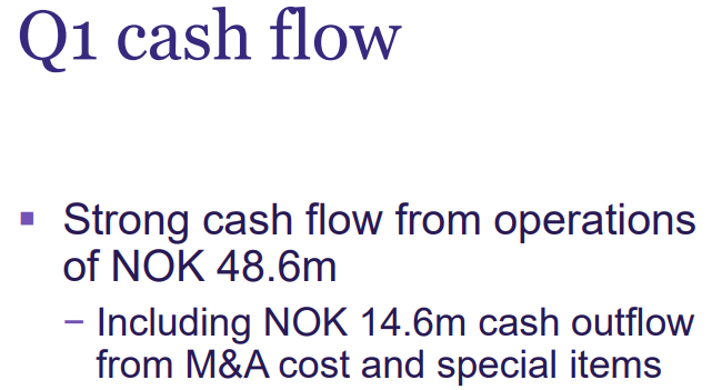 Cloudia kommer att bli ett betydande tillskott till de ARR-siffror som används i jämförelsen. I mars var det 634 MNOK och från den affären tillkom 94 MNOK → 728 MNOK.