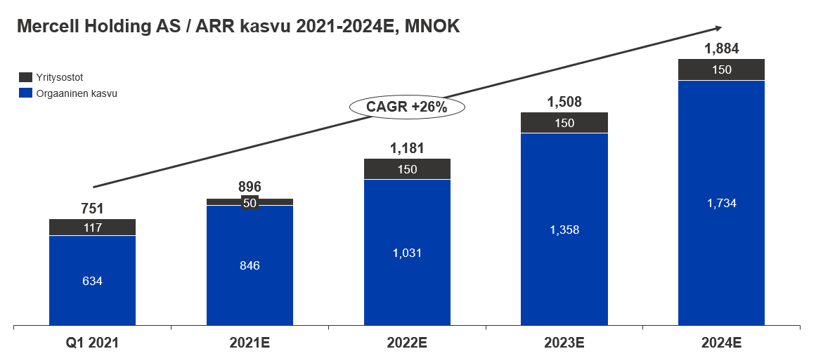 Den finska leverantören av e-upphandlingar Cloudia Oy (“Cloudia”) för 102,5 miljoner euro på en kassa- och skuldfri basis. 89,6 miljoner euro kommer att betalas kontant vid stängning, vilket återspeglar en nettoskuldjustering på 2,9 miljoner euro, och de återstående 10 miljoner euro kommer att betalas i Mercell-aktier under 2022, under förutsättning att retention- och prestationsmål uppfylls (baserat på aktiekursen vid tidpunkten för emissionen).