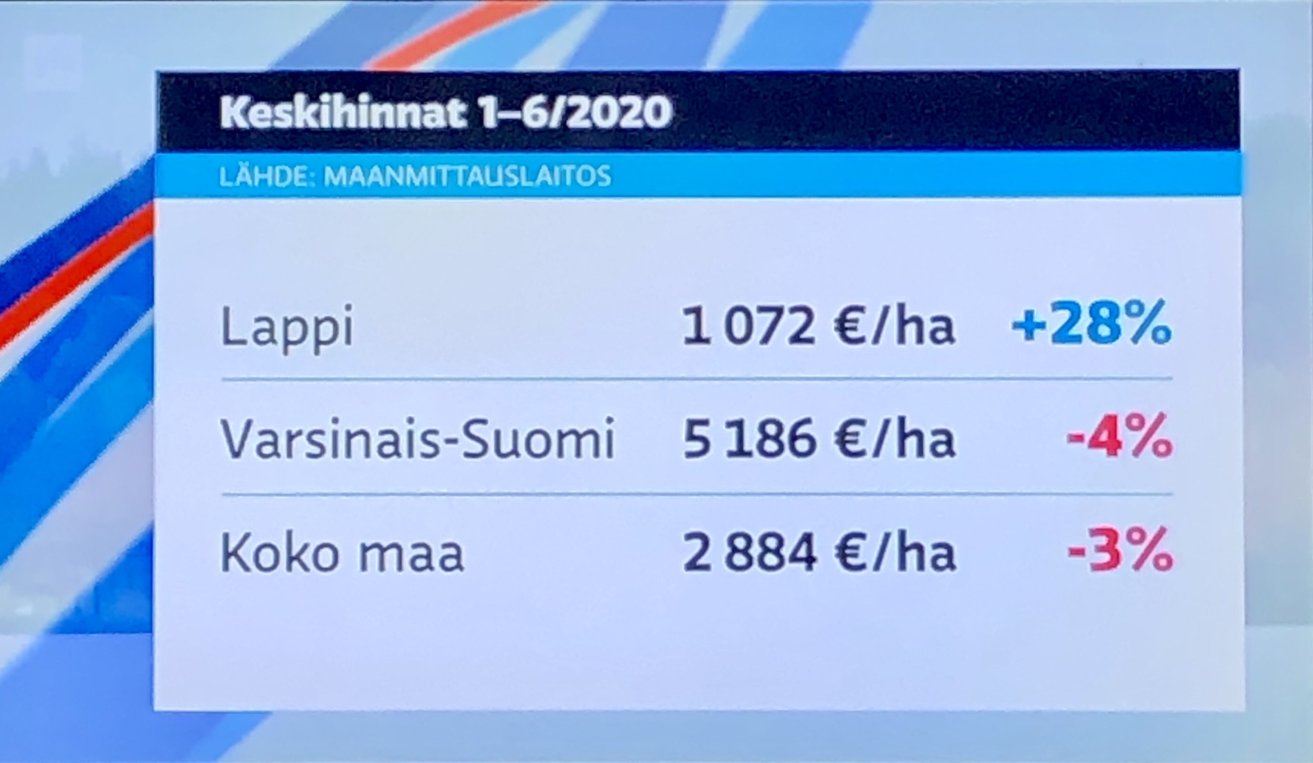 Esimerkkinä marraskuinen 145 hehtaarin metsäkauppa Lapista (Metsälehti Makasiinista 1/2020 poimittuna): Tilan ns. käypä arvo 59 tonnia, hintapyyntö 67, ”perinteisten metsäsijoittajien” tekemät tarjoukset 51–67 tonnia. Ja sitten sijoitusyhtiön tekemä tarjous: 81 tonnia. Tuollaisella tarjouksella on melko selvää, kenen kanssa myyjä tekee kaupat. Ainespuuston mottihinta oli 20 % alueen keskiarvohintaa korkeampi. Kaiken kukkuraksi kyseessä oli määräala, joten myös 3400 euron suuruinen lohkomiskustannus tuli rahasto-osakkaiden maksettavaksi. En jaksa varsinaisesti laskea, mutta pikaisen arvioni mukaan kyseinen metsätila tuottaa seuraavan 20 vuoden aikana enemmän kuluja kuin tuloja. Mutta ehkä se saadaan myytyä jollekin kiinalaiselle matkailuyrittäjälle hyvään hintaan vuonna 2050.