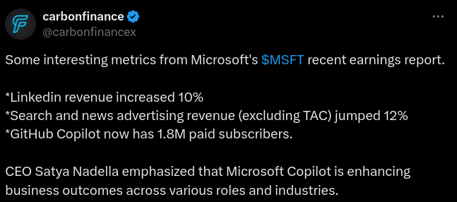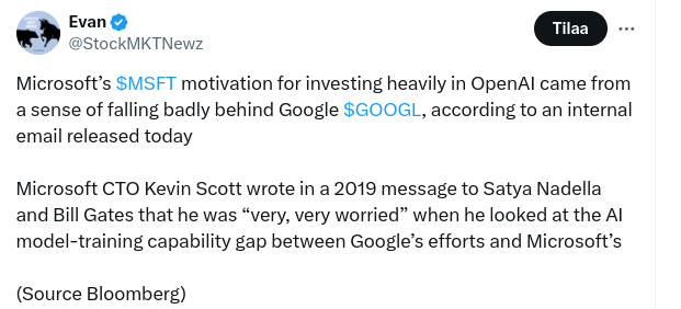 Tekoälyn hyödyntäminen tuotetarjoomassa on tuonut positiivisen vireen tulevaisuuden näkymiin, kun mm. tekoälyä hyödyntävä Azure on onnistunut voittamaan markkina-osuuksia. Yhtiöllä on myös hyvät lähtökohdat parantaa muiden työkalujensa (esim. Microsoft Copilot) tuottavuutta tekoälyn myötä.
