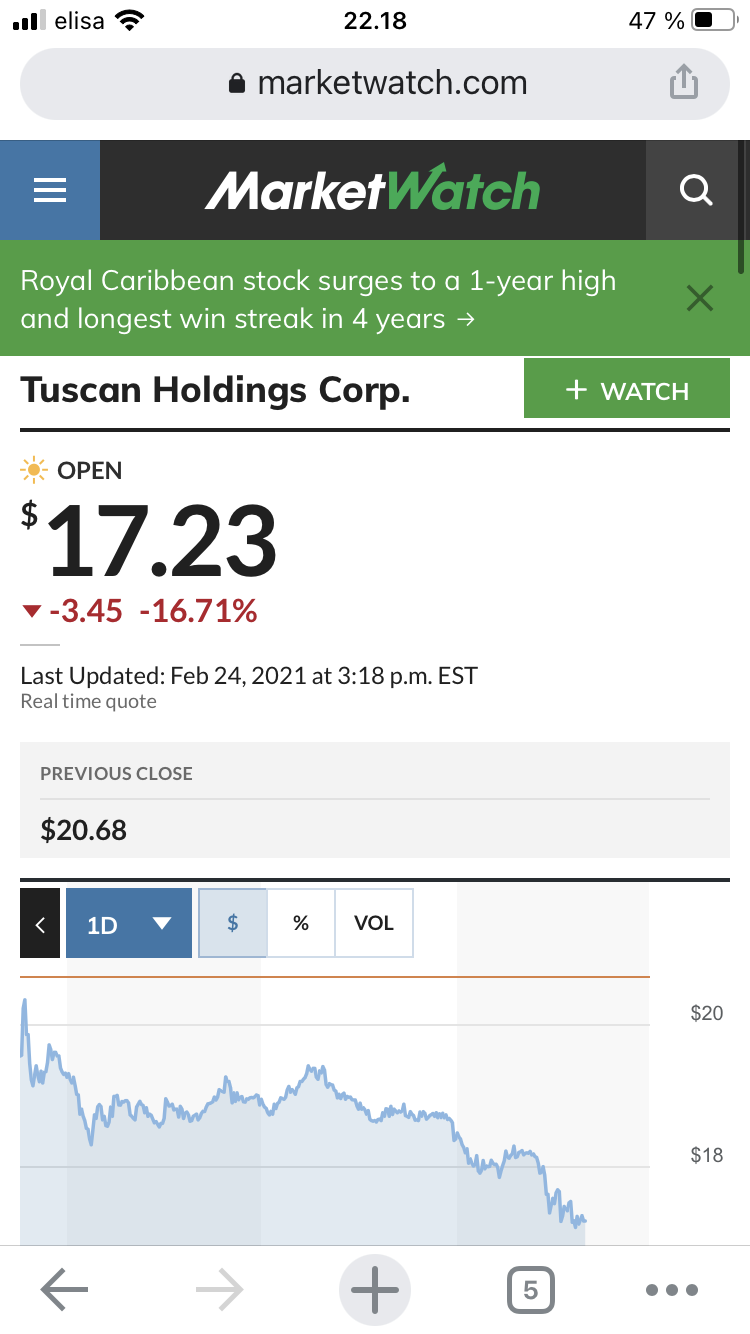 Hiukan Tuscanin kurssi viruu alaspäin päivä päivältä, nyt 18 ja risat. Ei ole sattunut silmään kunnollista valuaatiota Tuscanin osuudesta Microvastiin.