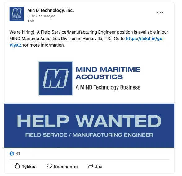 Rob Capps, MINDin toimitusjohtaja, totesi: "MIND saavutti vahvat tulokset toisella vuosineljänneksellä, jotka olivat suurelta osin odotustemme mukaisia. Palasimme positiivisen oikaistun käyttökatteen (Adjusted EBITDA) ja kannattavuuden tasolle sen jälkeen, kun ensimmäisen vuosineljänneksen toimitusviivästykset keskeyttivät hetkellisesti vauhtimme. Saavutimme myös paremman Seamap-liikevaihdon järjestelmämyynnin ja jälkimarkkinatoimintamme kasvavan panoksen ansiosta. Jälkimarkkinatoimintamme osuus liikevaihdostamme oli noin 68 % tämän tilikauden ensimmäisen kuuden kuukauden aikana. Kaiken kaikkiaan olen tyytyväinen kykyymme toteuttaa tilauskantaamme johdonmukaisesti ja tehokkaasti sekä saavuttaa suotuisia tuloksia. Vaikka raportoitu tilauskantamme, joka koostuu kiinteistä tilauksista, joista meillä on ostotilaukset tai sopimukset, laski vuosineljänneksen lopussa, potentiaalisten asiakkaiden putkemme pysyy vahvana. Uskomme, että tiettyjen tilausten vastaanottaminen, jotka palauttavat tilauskantamme ensimmäisen vuosineljänneksen lopun tasolle, on välitöntä.