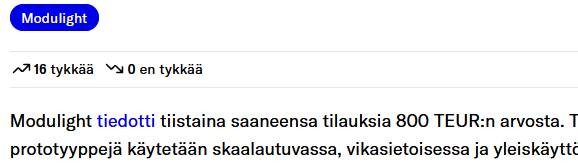 Antti ja Tommi juttelivat Modulightista, joko koettaa yhtiölle valon aika? ![]()