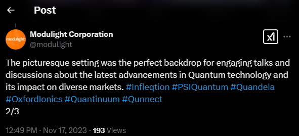 Veikkaan, että kyseessä on Quantinuum, koska Modulight on tägännyt Quantinuumin vuonna 2023 Twitterissä.