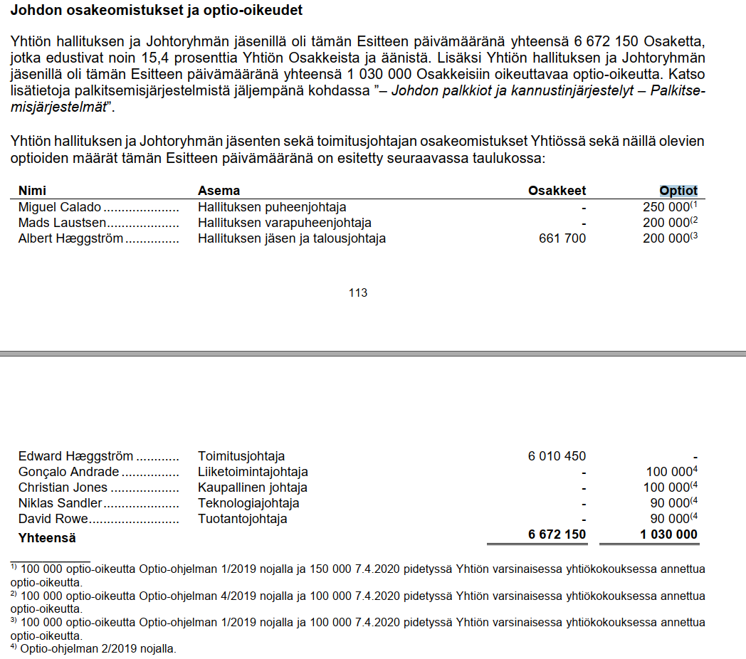 Options have also been distributed nicely before the listing, with prices of €1.1 in the 2019 program and €1.65 according to the 2020 program.