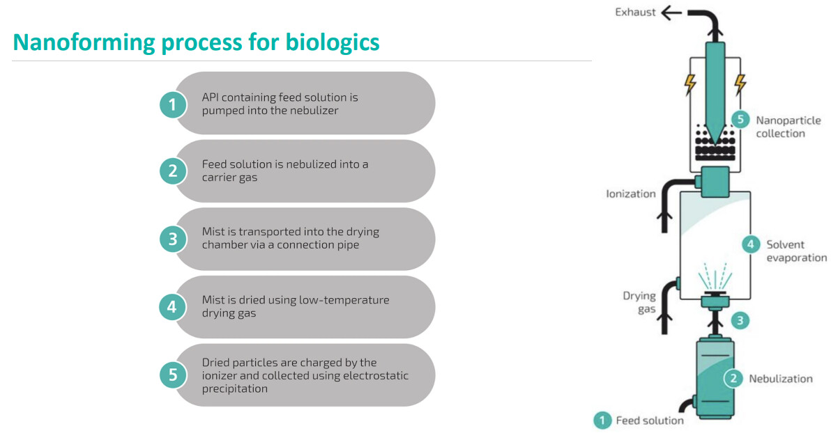 In my opinion, there is very significant potential in the formulation of biological macromolecular compounds. Here, especially monoclonal antibodies would be the big target. It seems there’s a lot of push for subcutaneous formulation of these, and at least based on Halozyme, there’s commercial potential too. This Nanoform biosetup actually seems to be somewhat similar to Elektrofil’s, without knowing much about either.