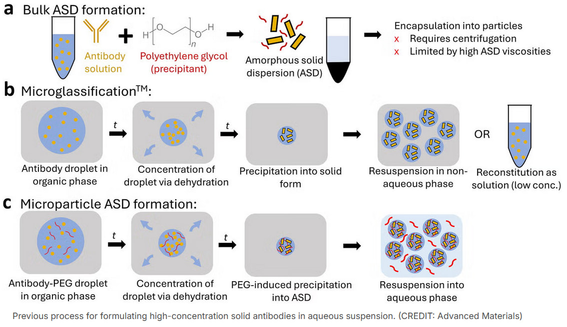 I came across this news regarding subcutaneous antibody injections: https://www.thebrighterside.news/post/antibody-injections-could-replace-slow-iv-drips-in-treating-many-diseases-mit-scientists-find/. That is an abridged version of a published research article. In it, researchers have precipitated antibodies with polyethylene glycol (PEG) and managed to suspend the antibody particles in water at a high PEG concentration. This PEG concentration dilutes after injection, allowing the antibodies to dissolve.