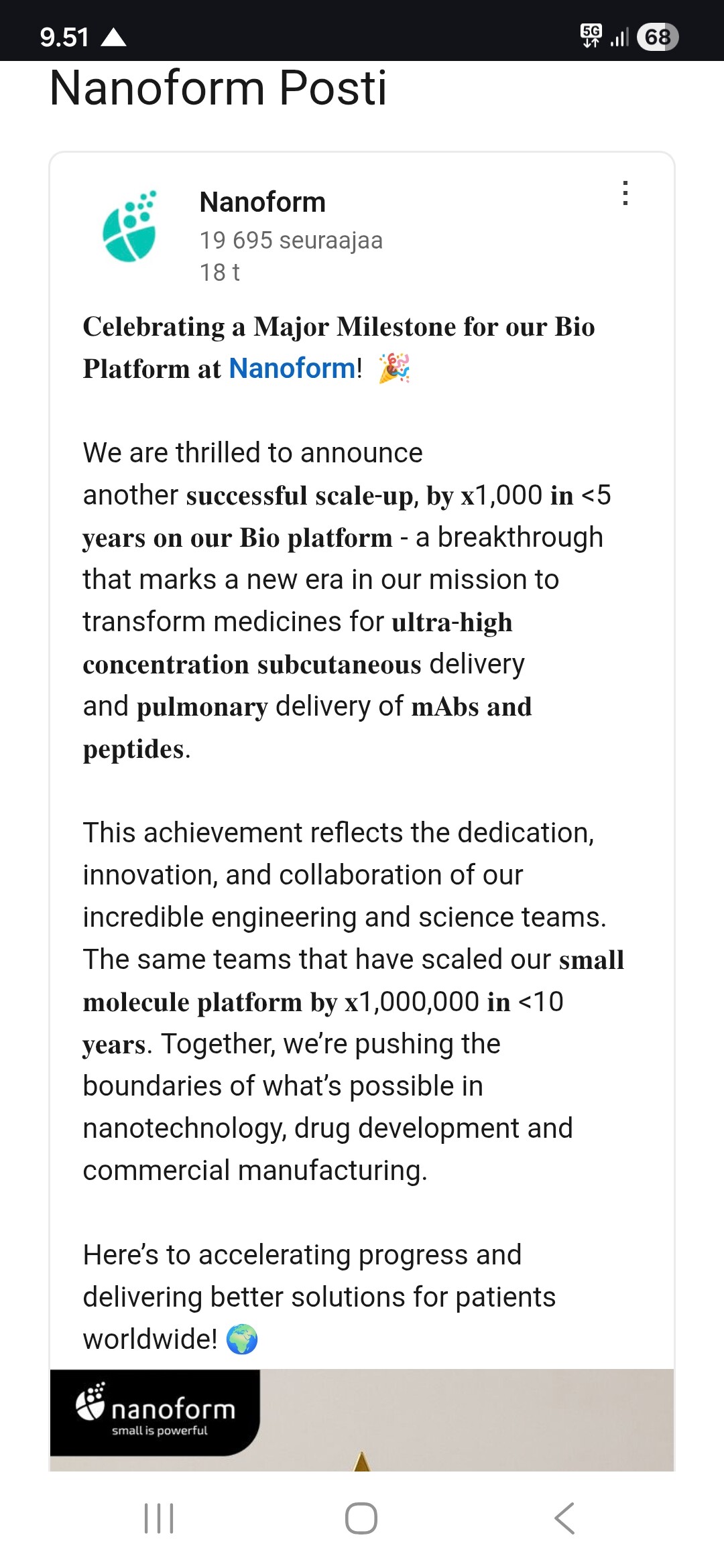 “Nanoform from the First North list. They had their CMD on Dec 16, 2025, and their 10th-anniversary celebrations during the same week. I attended the former. I was impressed during the factory tour in Viikki; these guys know what they are doing and they have something globally unique on their hands.