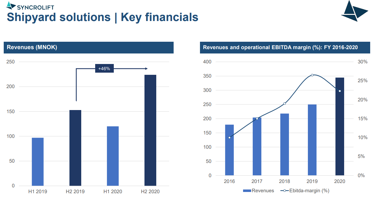 Syncrolift on Nekkarin perusta ja se tuottaa lähes koko liikevaihdon tällä hetkellä. Kyseessä on siis erilaisia nosturiratkaisuja laivatelakoille, joiden tehtävä on parantaa telakoiden tuottavuutta ja logistiikkaa. Yhtiöllä on ainakin 240 installaatiota 66 eri maassa. Asiakkaat ovat merivoimien telakoita, korjaustelakoita ja rakennustelakoita. Kyseessä on ilmeisen niche-markkina, josta Nekkarilla on tällä hetkellä pseudomonopoli ainakin 80 % osuudella. Viimevuosina tilauksia on tippunut merkittävästi ja tilauskanta on tällä hetkellä jo miljardi norjan kruunua, joten yhtiön on vähän pakkokin kasvaa tulevina vuosina jotta nämä tilaukset saadaan täytettyä.