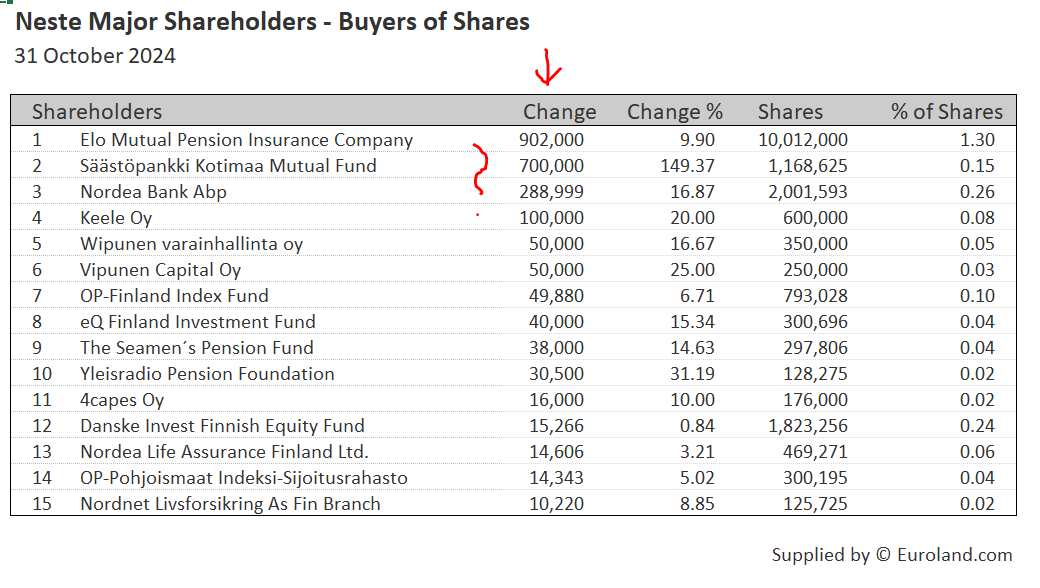 If you download November’s shareholders excel from Neste’s www, you will see that there is another sheet which shows the largest buyers of shares during November. St1 Nordic Corporation is not on the list. That’s why I was a little surprised…