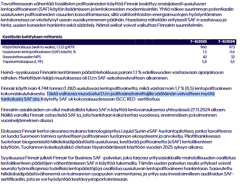2025 Q3 Neste tuotti SAF 244 tuhatta tonnia ja myi 251 tuhatta tonnia.