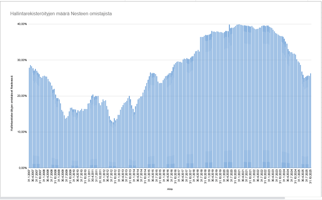 Hallintarekisteröidyt lisänneet 25,64% → 26,37%. Vastaavanlaista lisäystä kuukausitasolla ei ole tapahtunut lähemmäs viiteen vuoteen.