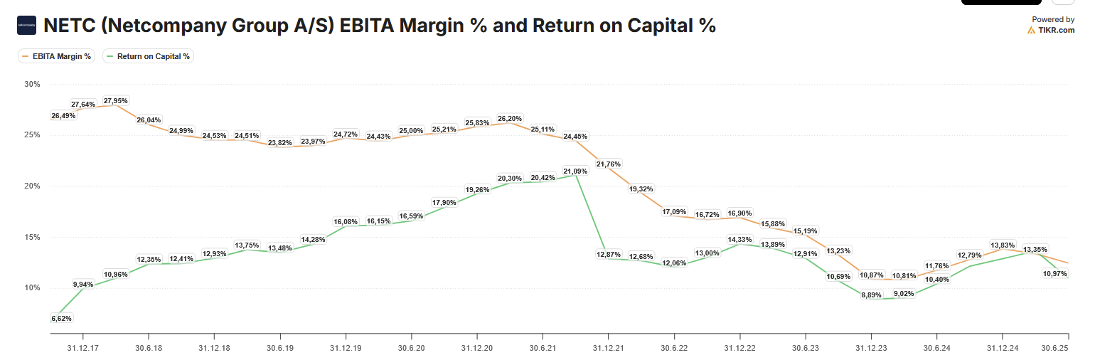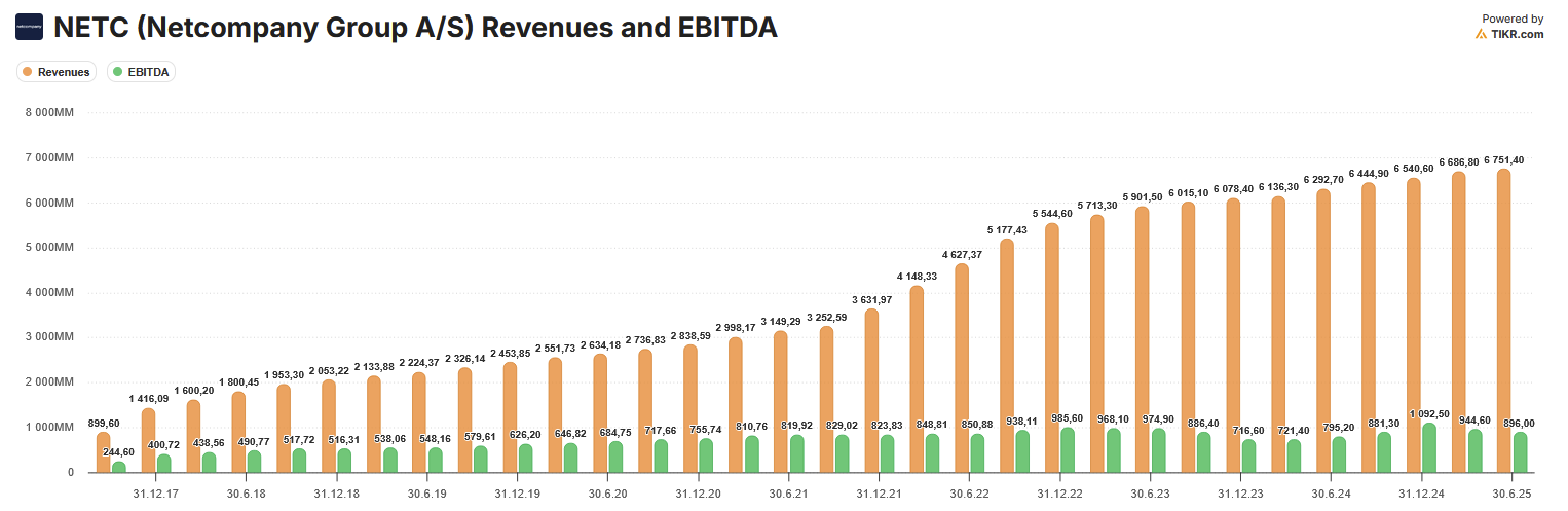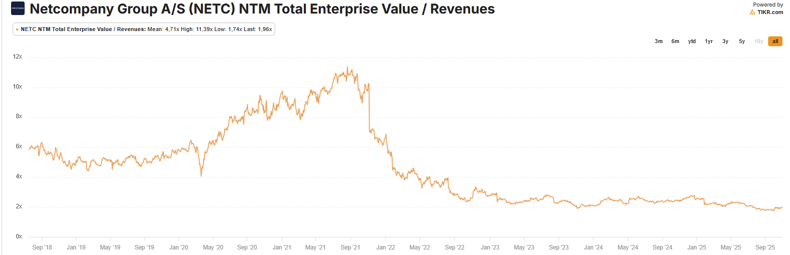 Netcompany on vuosia ollut Euroopan IT-palvelusektorin aivan kärkeä. Orgaaninen kasvu on ollut hyvää ja erityisesti kannattavuus on ollut vahvaa. Yhtiössä on noin 9500 osaajaa ja vertailuna Tietoevryllä vajaa 15 000, Goforella 1700 ja Siilillä vajaa 1000 osaajaa Q3’25 lopussa.