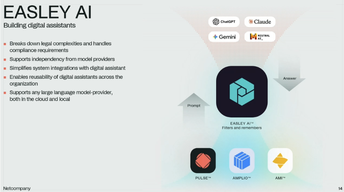 Netcompanyn alustat ovat Pulse, Amplio ja AMI sekä yhdistää nämä EASLEY AI kanssa. Yhtiö kävi läpi eri tuotteitaan, mutta konkretia jäi valitettavasti vähäiseksi.