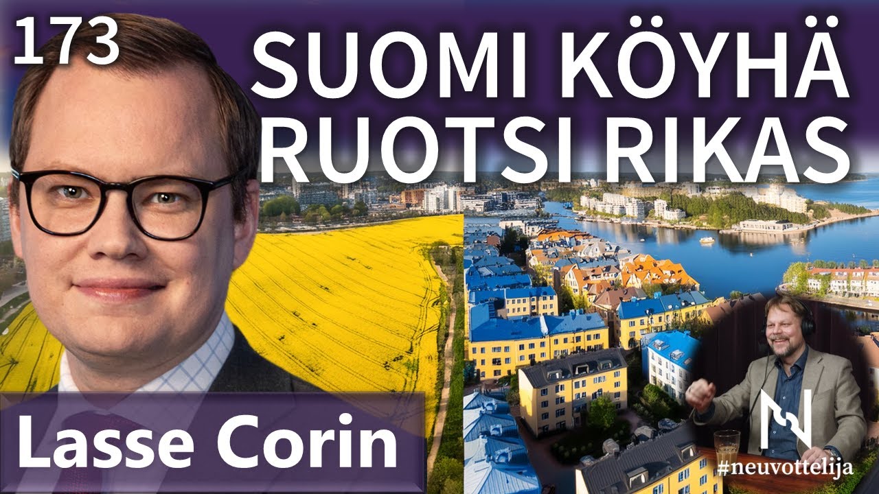 Lasse Corin, Chief Economist at Aktia, discusses the Finland vs. Sweden situation with Sami, where Swedes are approximately $200,000 wealthier per adult according to Credit Suisse data. According to Lasse’s analysis, the Swedes’ substantial pension savings account for up to $100,000 of that difference, but we are still poorer. Surprisingly, 20 years ago during Nokia’s heyday, we were even ahead, so the trend is concerning. The episode includes OpenAI DALL-E illustrations (a sister project of #ChatGPT) 00:00 Intro: Lasse Corin, Aktia 01:05 Lasse’s career before Aktia, SEB, 01:40 The career path of organizational economists vs. micro-macro economists like Lasse 05:15 A Swedish real estate bubble? 06:52 Is the Euro a disadvantage compared to Sweden and Denmark 09:39 Swedish wealth is up to $200,000 higher per adult in Credit Suisse wealth statistics 11:18 Swedes have substantial pension funding of $100,000 per adult in the statistics 12:40 Finns were wealthier than Swedes during Nokia’s heyday, then we fell behind 14:50 Does the reversal of Finland’s current account surplus into a deficit explain the relative impoverishment of Finns? 19:14 Why does Finland treat the pension system as part of the state? 24:14 Finns’ stock investing is counter-cyclical 26:45 Banking sector outlook in the Eurozone 36:11 Pori Ässät (The Pori Aces) 37:30 Finns’ 2022 fear of mortgage debt 39:36 Wealth is a function of age 40:38 Outro #economists#negotiators#negotiator#nationaleconomy#wealth#riches#poverty#investors#gdp#Sweden#Finland