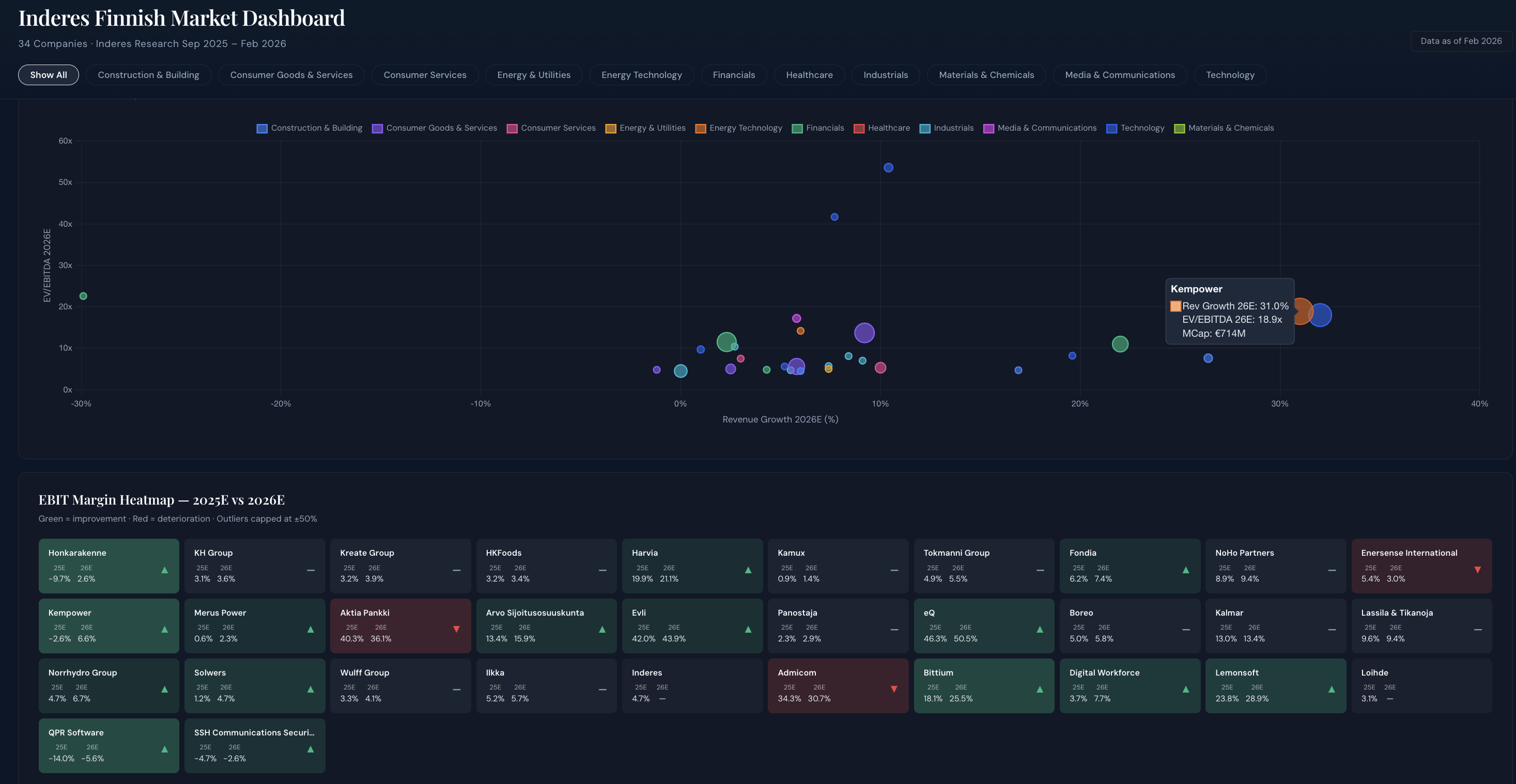 06:30 Inderesin raporttien ja datan automaattinen dashboard EV / EBITDA ja EBIT% heat map