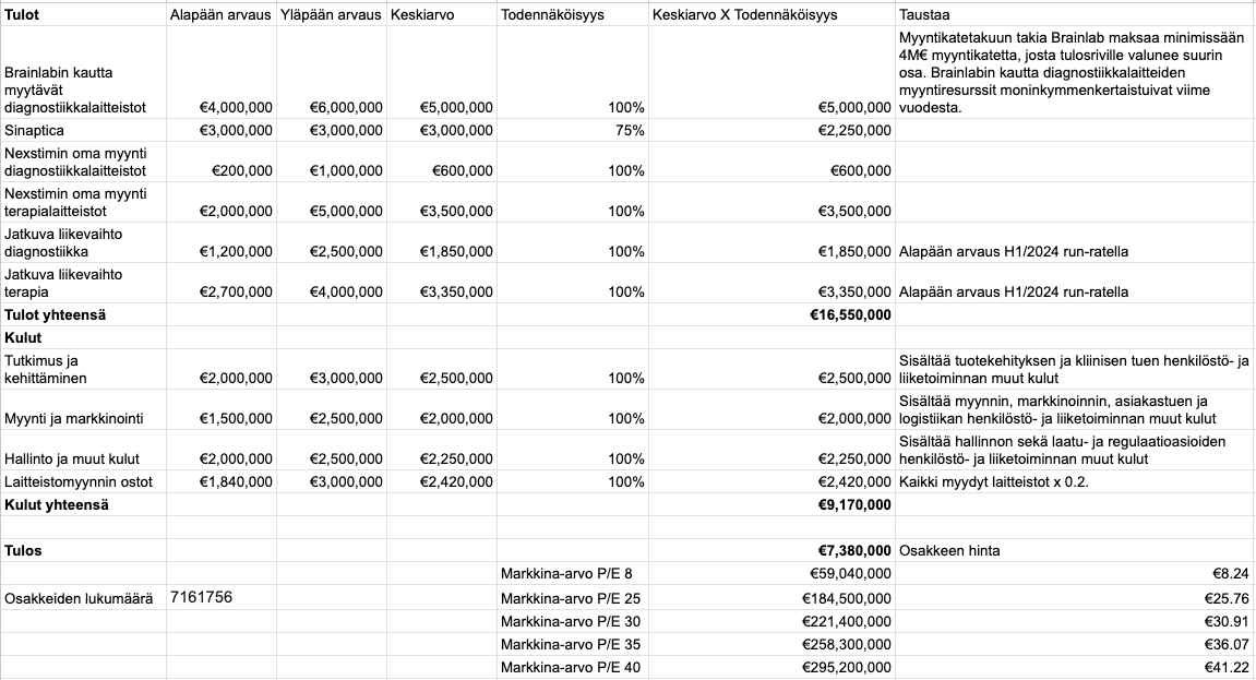 Expenses and equipment sales 2023 annual report page 15 https://www.nexstim.com/fileadmin/Downloads/Financial_Reports/Nexstim-VSK-FI_FINAL.pdf