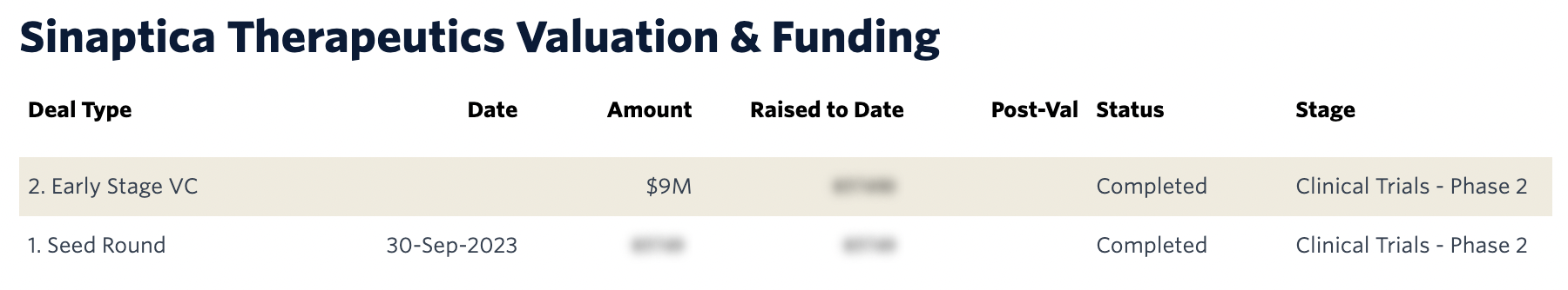 ” Sinaptica Therapeutics has raised over time = 10.5M $”