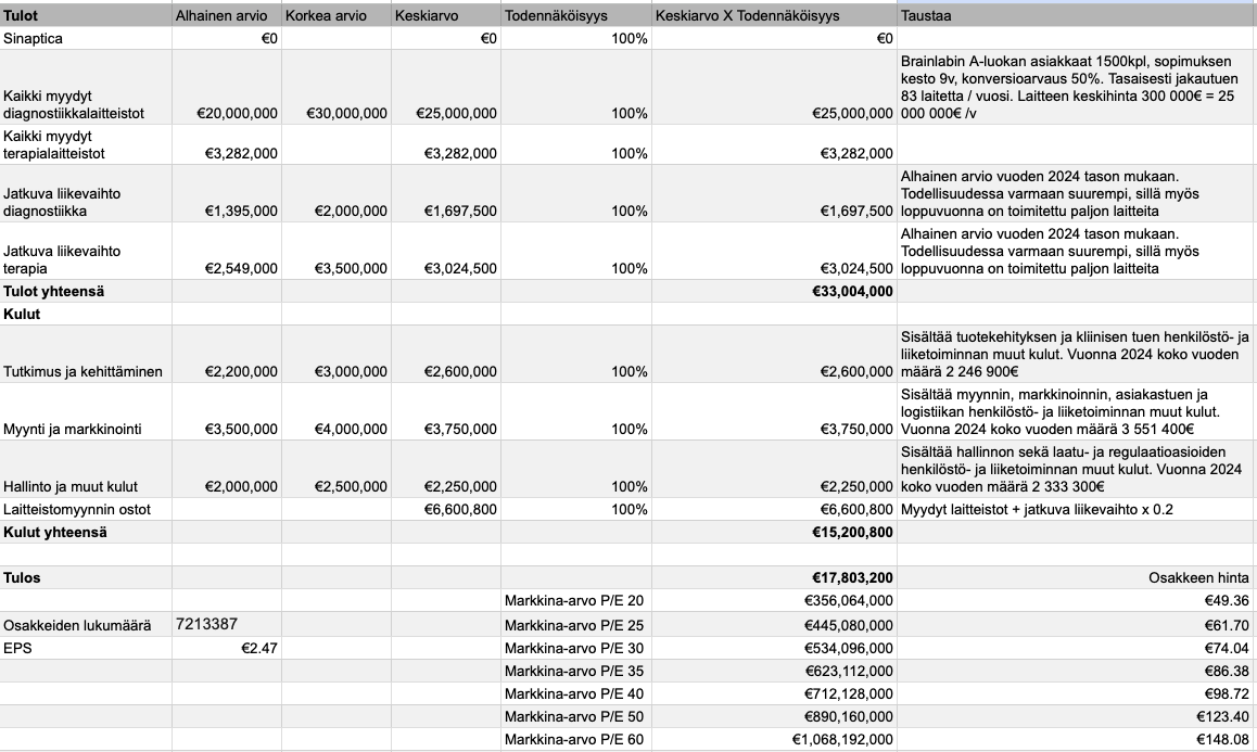 Edit. Oli jäänyt ostot -riville teksti että Brainlab olisi poissa laskuista, mutta todellisuudessa sekin on mukana.