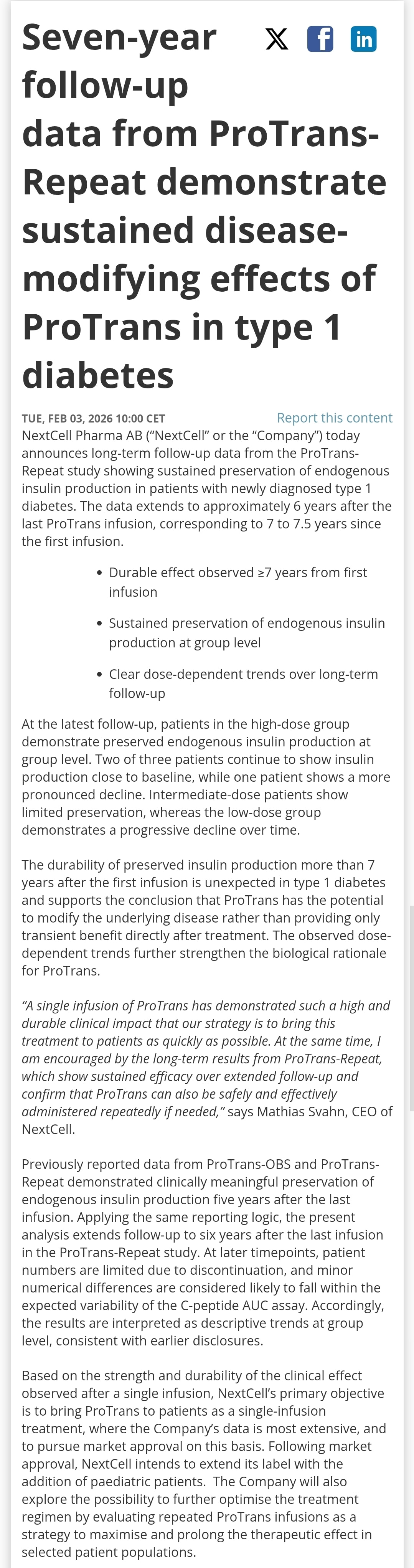One possibility, of course, is that Nextcell perceives its “big brother” Diamyd as a threat to its own business potential, as Diamyd could reach the market soon with Stage 3 treatment. Furthermore, it has a strategic lead in Stage 0–2 treatments. If treatment responses, costs, and prices are on the same level, Diamyd could take the whole game in the West. One could also think that an aggressive focus on Asia using “fast tracks” is the best chance for long-term commercial success.