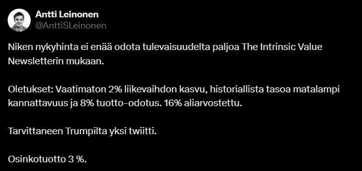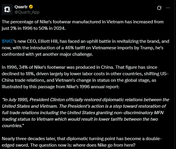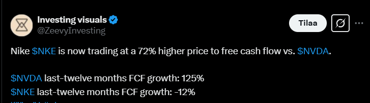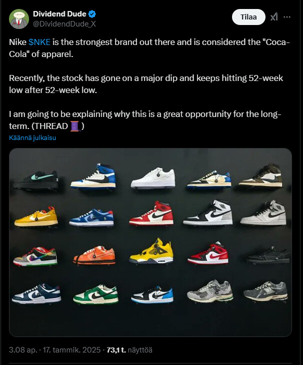 I don’t know if my view is due to my new personal investments in the company, but I took the above comment positively - revenue and margins will start to improve after the next quarter. Uncertainty, on the other hand, was highlighted by tariffs imposed by Trump, which also affect Nike. In addition, there are concerns about whether Nike’s product development is strong enough to beat competitors. And similarly, the sales network should be restructured, and there is still plenty of inventory to clear.