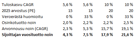 Ytterligare ett par uppskattningar av potentiell avkastning med olika antaganden för perioden 2021-2025, när utdelning betalas ut med 30 % av resultatet