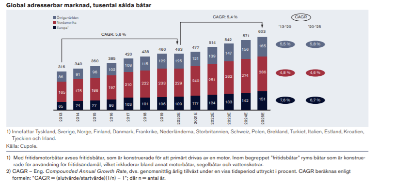 Enligt prospektet har CAGR-tillväxten varit 5,6% under 2013-2020 och förväntas vara 5,4% under 2020-2025.