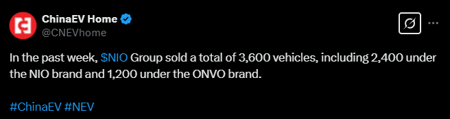Tässä on tviitti NIO:n viime viikolla myydyistä autoista.