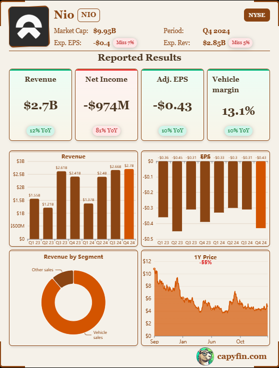 NIO:n tulos jäi jälleen odotuksista ja kannattavuushaasteet jatkuivat korkeiden kehitys- ja laajentumiskulujen vuoksi.