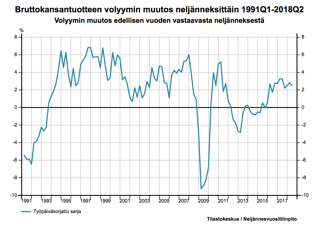 Tossa vielä päälle pari kuvaajaa Tilastokeskukselta mitkä hyvin kuvaa, minkälainen korpitaivallus Suomen talous on ollut finanssikriisin jälkeen. Helsingin pörssi ei ole hyvä indikaattori Suomen talouden kuvasta, kun suuri osa liikevaihdoista melkein kaikilla isoilla firmoilla tulee ulkomailta.