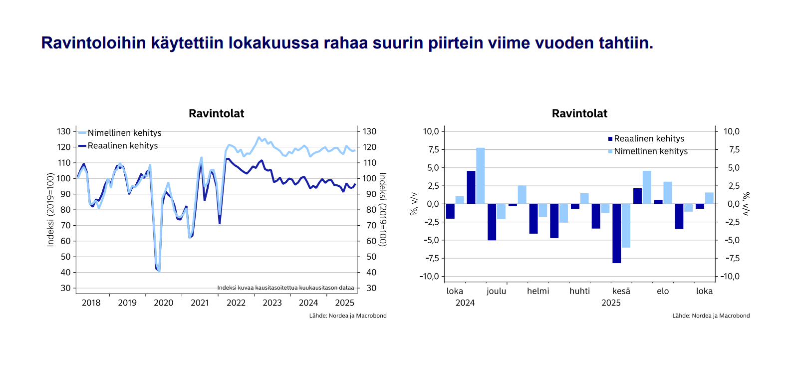 Ravintoloilla ihan ok lokakuu Nordean korttidatan mukaan: