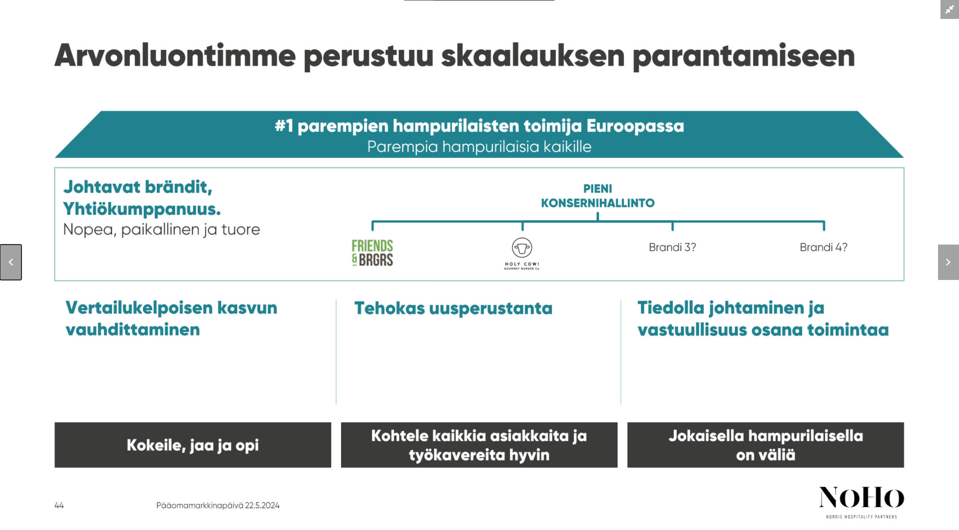 Ravintoloiksi muutettuna tämä lukumäärä on 243 ravintolaa Suomessa ja 53 ulkomailla ja on tämänkin puolesta erittäin oleellista keskittyä ylivoimaisesti suurimpaan markkinaan.