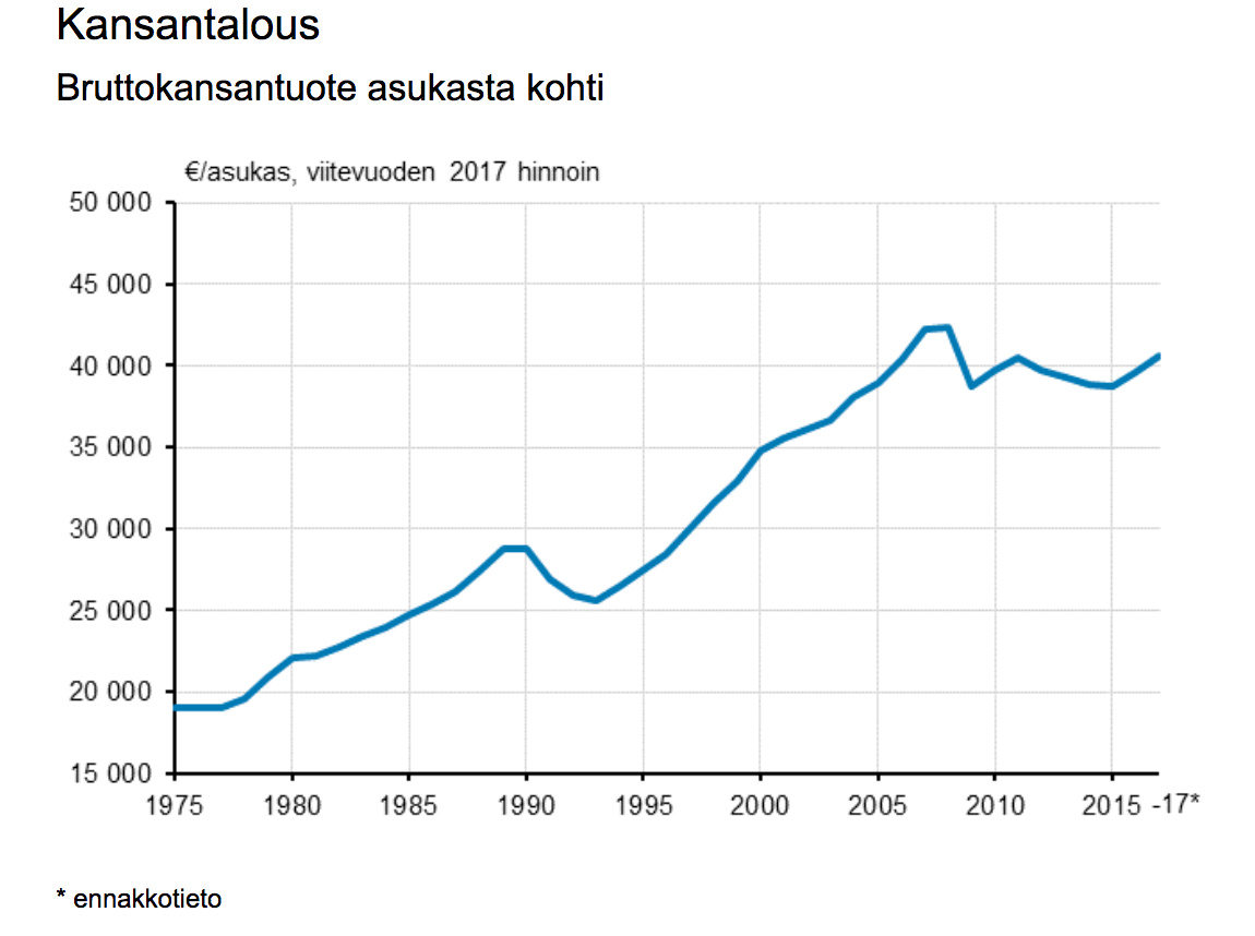 Her er derudover et par grafer fra Statistikcentralen, der meget godt beskriver, hvilken vildmarksvandring den finske økonomi har været på efter finanskrisen. Helsinki-børsen er ikke en god indikator for billedet af den finske økonomi, da en stor del af omsætningen for næsten alle store virksomheder kommer fra udlandet.