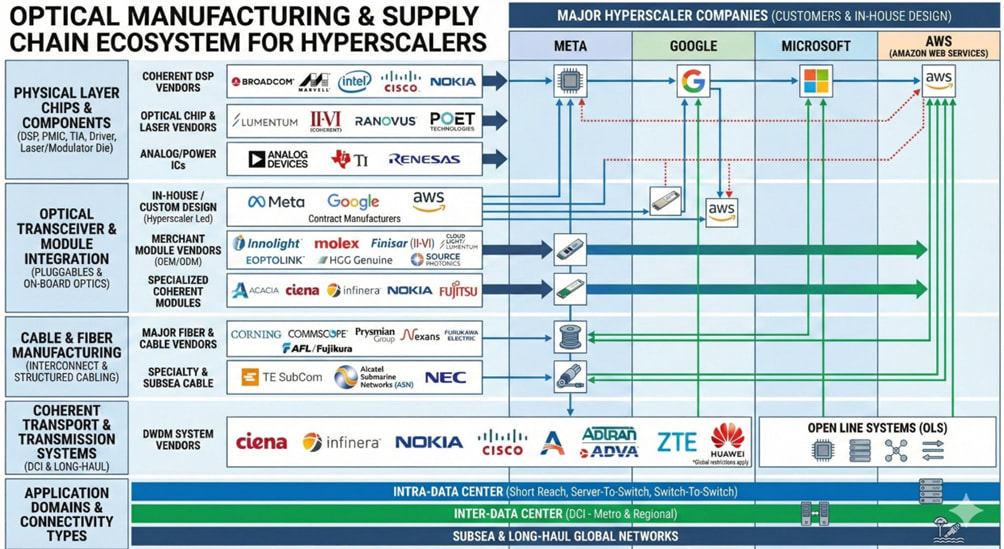 Taulukko on tosin monilta osin vanhentunut. Nokia+Infinera on yhdessä, ja tehtaita on rakennettu, ja kumpikaan heistä ei ole ollut komponentin myyjä → todennäköisesti ovat tulevaisuudessa.