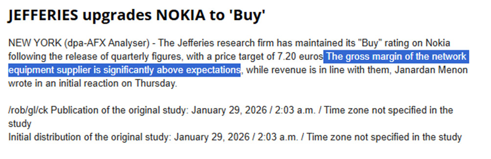 Jefferies on jokseenkin erimieltä kuin jotkut muut analyytikot. Analyytikko nostaa esille että bruttokatekehitys on merkittävästi odotuksia parempaa, ja samaan aikaan liikevaihto ennusteissa.