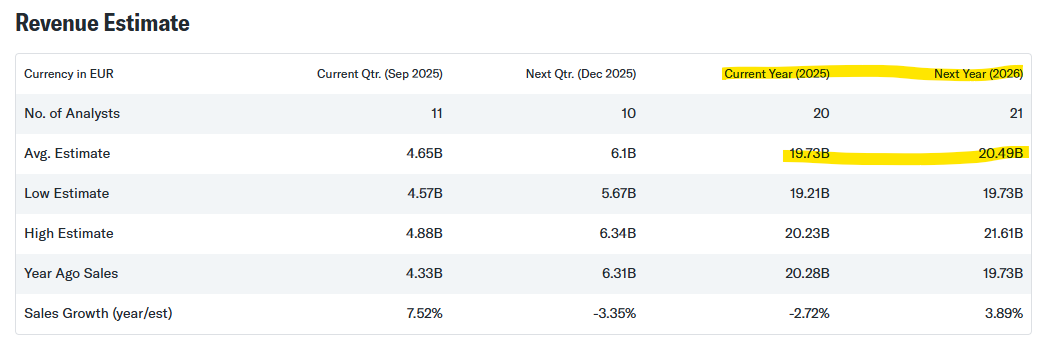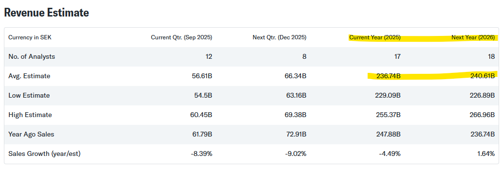 kiitos noista, katselin Yahoosta analyst ennusteita Nokia vs Ericsson 2025 ja 2026 vuoden liikevaihtoa