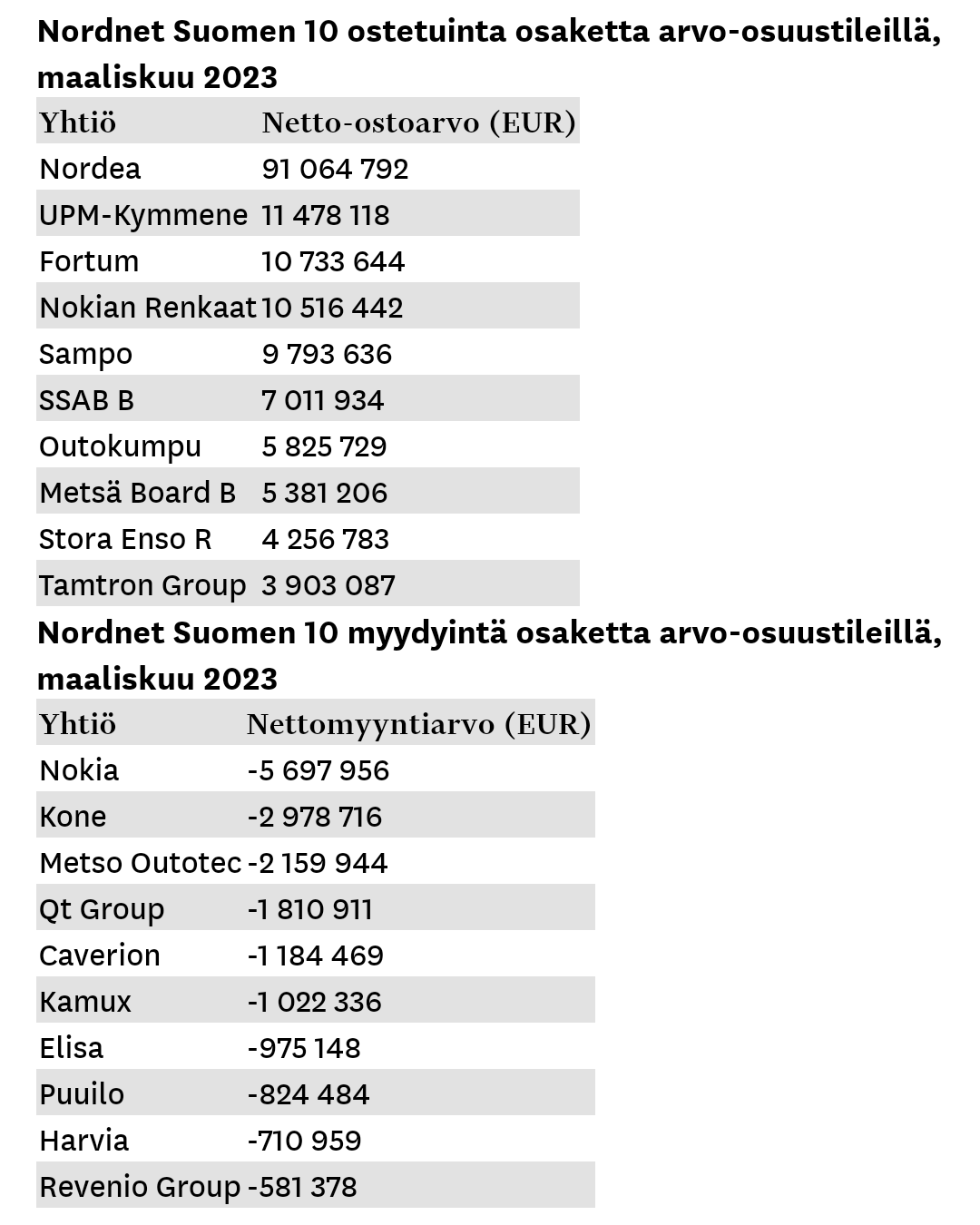 Eipå tuo myynti suuren suurta ole. Muutama sijoittaja löytänyt muita kohteita. Mainittakoon että olen itse “syyllinen” XX%:n Nokian maaliskuun myynneistä.