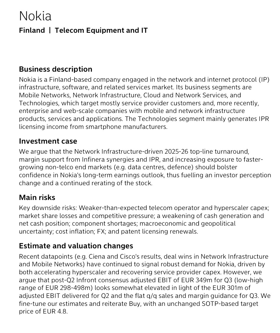 ”Jefferies nostaa Nokian tavoitehinnan 4,50 euroon (aik. 3,90 eur) ja toistaa pidä-suosituksen”