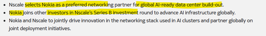Væksten i Nscale–Microsoft–Nvidia-trekanten øger direkte Nokias efterspørgsel efter datacenter-netværk, da Nokia er den officielle og foretrukne netværks- og forbindelsespartner.