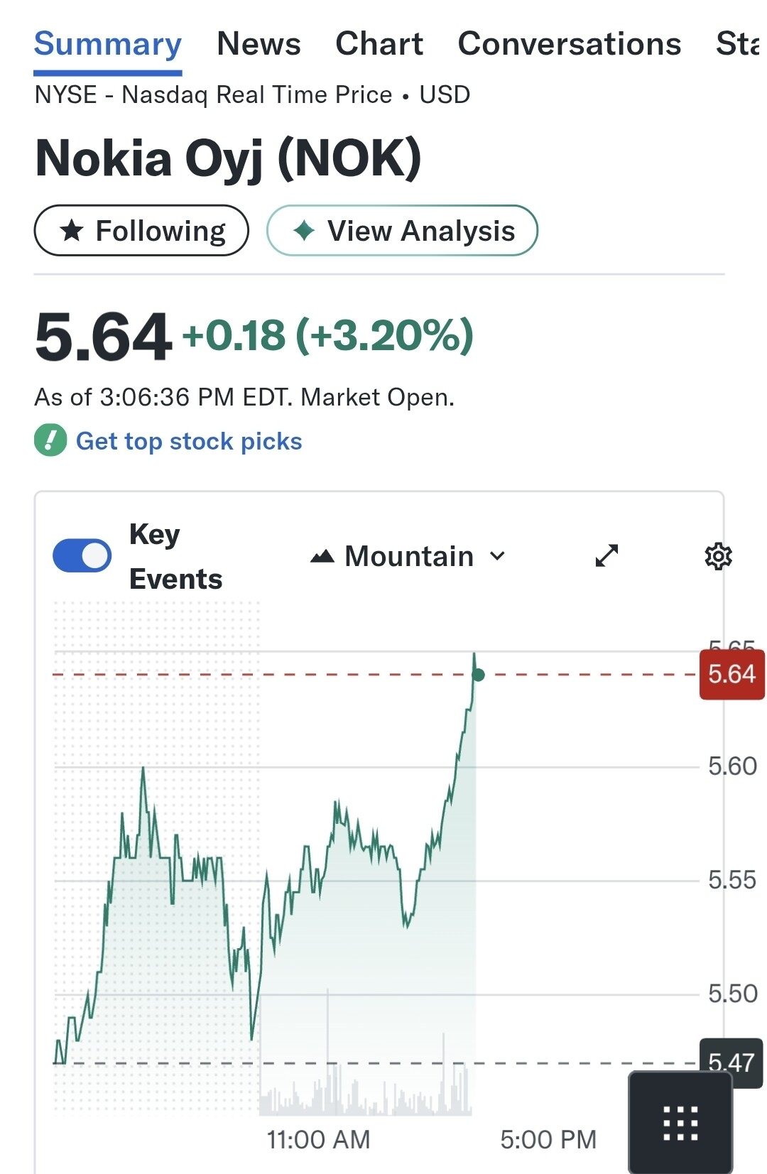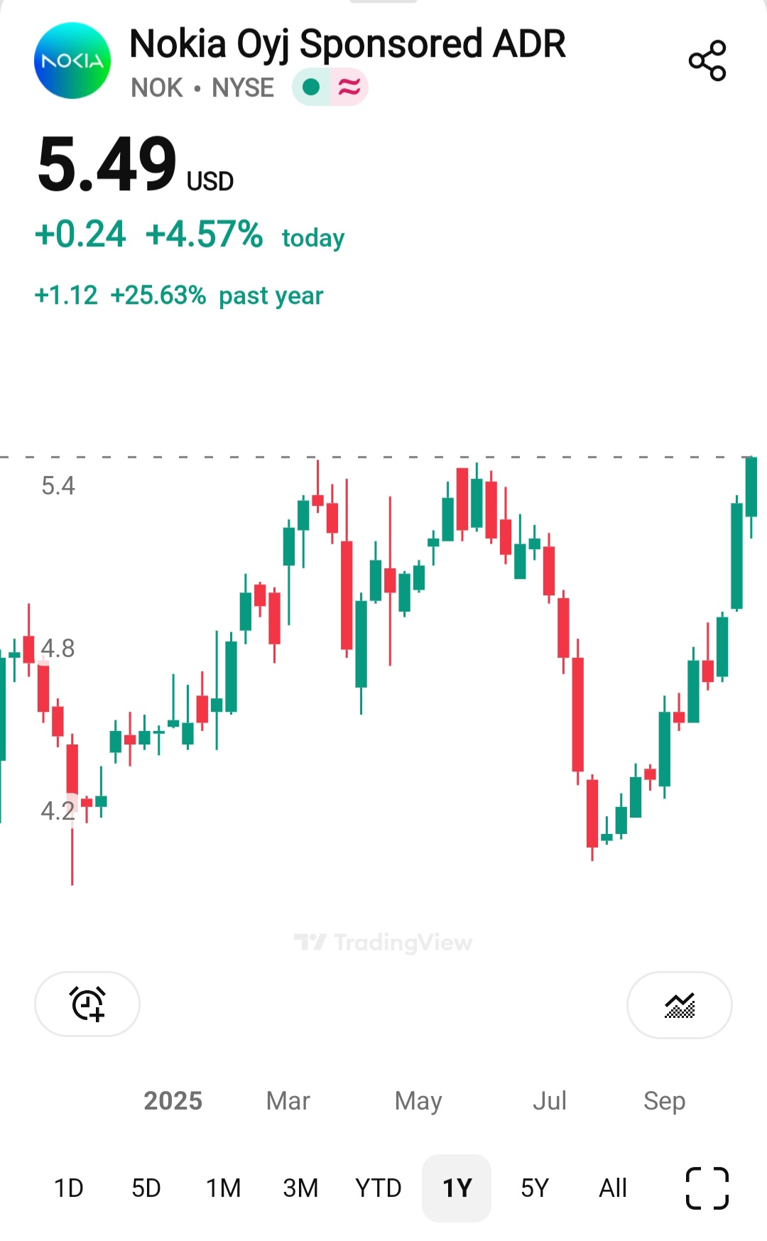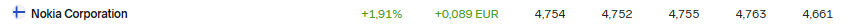 Vi er stadig langt fra Cienas stigninger. For Nokias vedkommende handler det i høj grad om, hvor længe det slæber eller er nødt til at slæbe mobilnetværksankeret i bunden. Den nuværende stigning kan også vende til et fald, men med et godt resultat brydes 5€ let.